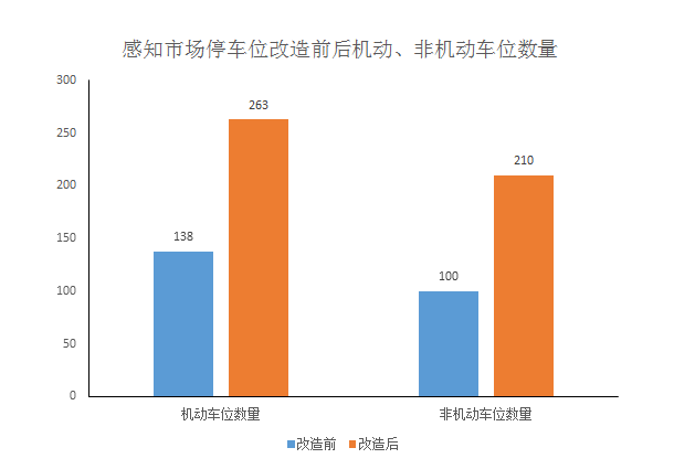 在機(jī)動(dòng)車車位上,擬在保留北停車場(chǎng)、地下停車場(chǎng)的基礎(chǔ)上,于市場(chǎng)南側(cè)新開(kāi)辟一南停車場(chǎng),并沿路規(guī)劃若干處停車位。經(jīng)車位重新劃分,預(yù)計(jì)可設(shè)車位263個(gè),其中北停車場(chǎng)38個(gè)、地下停車場(chǎng)160個(gè)、南停車場(chǎng)20個(gè),沿路停車位45個(gè)。