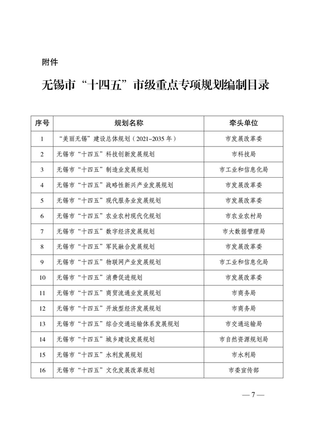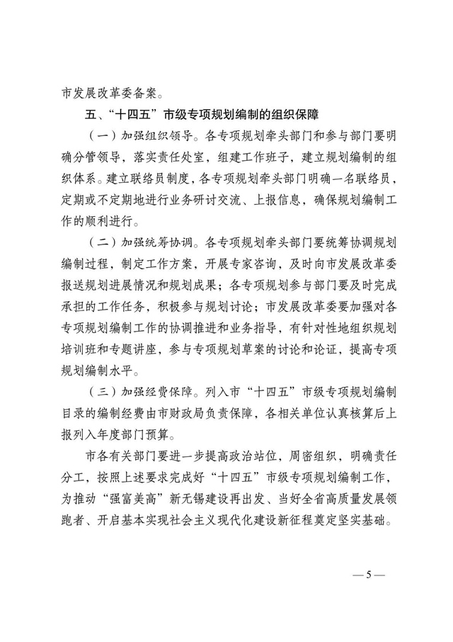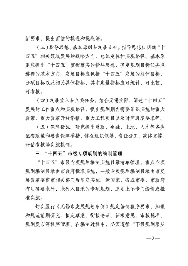 市政府辦公室關(guān)于做好全市“十四五”市級專項規(guī)劃編制工作的通知(錫政辦發(fā)[2020]41號)