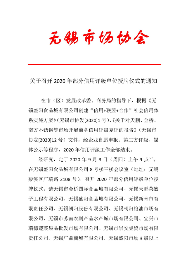 關于對2020年部分信用評級單位授牌儀式的通知書