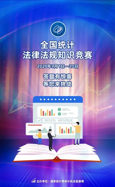 按照《全國(guó)統(tǒng)計(jì)法治宣傳教育第七個(gè)五年規(guī)劃(2016—2020年)》部署要求,為進(jìn)一步推進(jìn)依法統(tǒng)計(jì)依法治統(tǒng),營(yíng)造良好統(tǒng)計(jì)法治環(huán)境,推動(dòng)參與統(tǒng)計(jì)工作各類主體和社會(huì)公眾嚴(yán)格遵守統(tǒng)計(jì)法律法規(guī),國(guó)家統(tǒng)計(jì)局決定于2020年9月1日至9月20日,組織開(kāi)展全國(guó)統(tǒng)計(jì)法律法規(guī)知識(shí)競(jìng)賽。本次競(jìng)賽由國(guó)家統(tǒng)計(jì)局統(tǒng)計(jì)執(zhí)法監(jiān)督局具體負(fù)責(zé)組織實(shí)施,各?。▍^(qū)、市)統(tǒng)計(jì)局和國(guó)家統(tǒng)計(jì)局各調(diào)查總隊(duì)負(fù)責(zé)宣傳發(fā)動(dòng)本地區(qū)參與統(tǒng)計(jì)工作各類主體和社會(huì)公眾踴躍參加,特別是鼓勵(lì)各類統(tǒng)計(jì)調(diào)查對(duì)象、地方黨政領(lǐng)導(dǎo)和有關(guān)部門工作人員積極參與。競(jìng)賽內(nèi)容以《統(tǒng)計(jì)法》《統(tǒng)計(jì)法實(shí)施條例》《全國(guó)人口普查條例》等統(tǒng)計(jì)法律法規(guī)為主,還包括《憲法》《民法典》《突發(fā)事件應(yīng)對(duì)法》等與人民生活緊密相關(guān)的法律法規(guī),設(shè)有近300道題的題庫(kù),均為選擇題。
