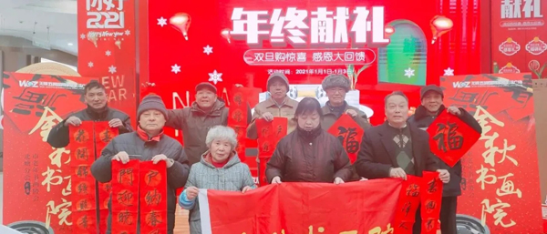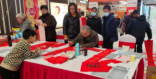 無錫五洲國際家居生活廣場書法家們現(xiàn)寫春聯(lián)現(xiàn)場掛著驚喜福袋滿滿的都是新春福氣總銷售額破1888萬元的喜人成績是錫城人民對我們的信賴