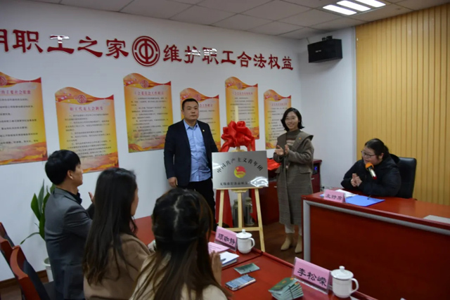 下午14:30,會議在莊嚴的國歌聲中正式開幕。首先由共青團梁溪區(qū)委書記徐黎和新任的盛陽食品城團支部書記李飛龍上臺為盛陽團支部進行揭牌。揭牌過后,徐書記分別從團員、團支部、團組織三個