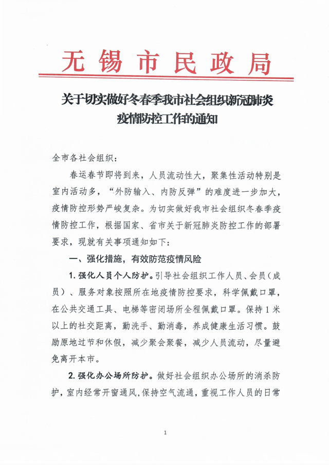 關(guān)于切實(shí)做好冬春季我市社會(huì)組織新冠肺炎疫情防控的通知