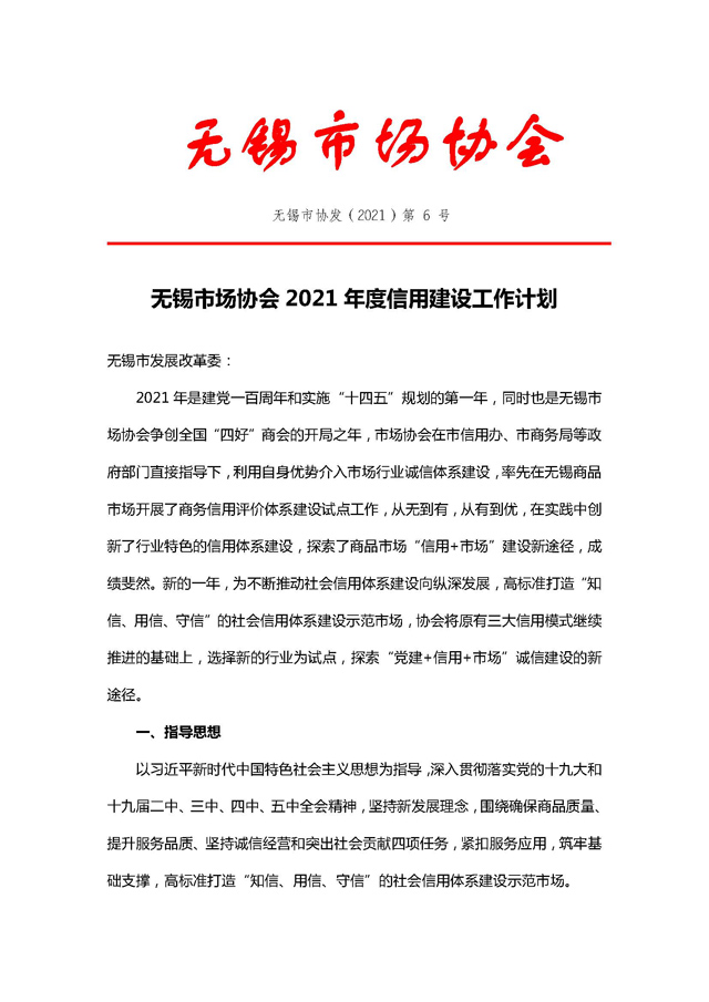 無錫市協(xié)發(fā)【2021】第6號無錫市場協(xié)會2021年信用建設工作計劃