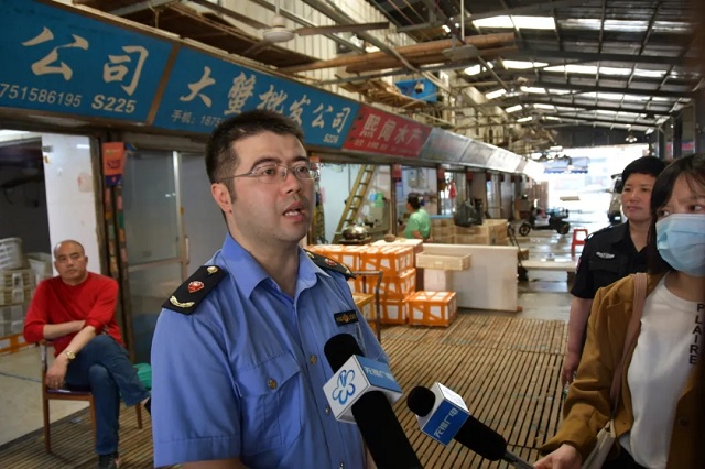 期間,華總向檢查組成員和媒體朋友介紹了盛陽食品城小龍蝦銷售情況以及公司采用的區(qū)域化管理模式,其中小龍蝦日交易量占到了整個無錫市場日交易量的90%以上(目前日均銷量20萬斤左右),對整個無錫市場的保供穩(wěn)價起到重要作用;在小龍蝦流動快檢點(盛陽螃蟹交易區(qū)三期),馮總給現(xiàn)場的新聞媒體講解了盛陽食品城的食品安全管理制度,馮總表示:針對進入市場銷售的水產(chǎn)品,市場職能部門嚴(yán)格遵循市場監(jiān)督管理局和無錫食品科技園下達的食品索證索票和食品安全快速檢測管理制度,利用市場電子溯源系統(tǒng)和人工登記準(zhǔn)入制度,嚴(yán)格做到銷售商品“來源可溯,去向可追”,并在盛陽市場嚴(yán)格執(zhí)行“先檢后售”、“市場商鋪、銷售商品全覆蓋輪流抽檢”的食品快檢流程,嚴(yán)守農(nóng)批市場主體管理責(zé)任,為守護錫城百姓餐桌安全盡心盡力。