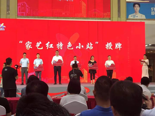 隨后,啟動(dòng)儀式正式開始?;顒?dòng)分為三個(gè)篇章,第一篇章——集市廣益,勇立潮頭?,F(xiàn)場(chǎng)大屏幕播放了回顧小鎮(zhèn)黨建三年工作的內(nèi)容,一個(gè)個(gè)生動(dòng)鮮活的畫面都讓人銘記于心。接著領(lǐng)導(dǎo)們先后為《紅梅花香先鋒驛站》、《家藝紅特色小站》六個(gè)黨支部授牌,盛陽食品城光榮地成為六分之一,由朱月娥同志代表盛陽黨支部上臺(tái)領(lǐng)受了此項(xiàng)榮譽(yù)。