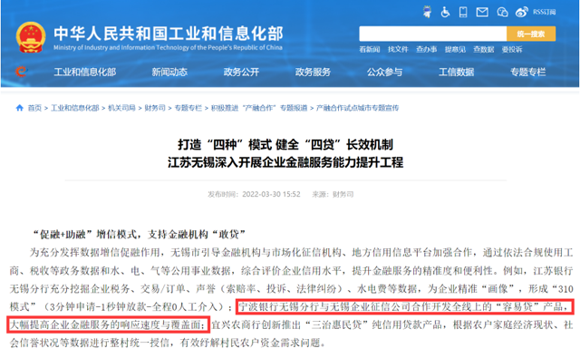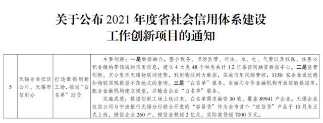 基于“容易貸”在支持普惠金融方面的突出表現(xiàn),市地方金融監(jiān)管局相關(guān)工作人員表示,“我市今后將大力支持金融機(jī)構(gòu)借助科技手段打造諸如‘容易貸’這樣的信貸產(chǎn)品。”今年3月,“容易貸”產(chǎn)品獲國家工信部肯定,被贊大幅提高了企業(yè)金融服務(wù)的響應(yīng)速度與覆蓋面。同時(shí),征信公司實(shí)施的《打造數(shù)據(jù)創(chuàng)新工場,推動“白名單”助貸》項(xiàng)目入選2021年度江蘇省社會信用體系建設(shè)工作創(chuàng)新項(xiàng)目名單。