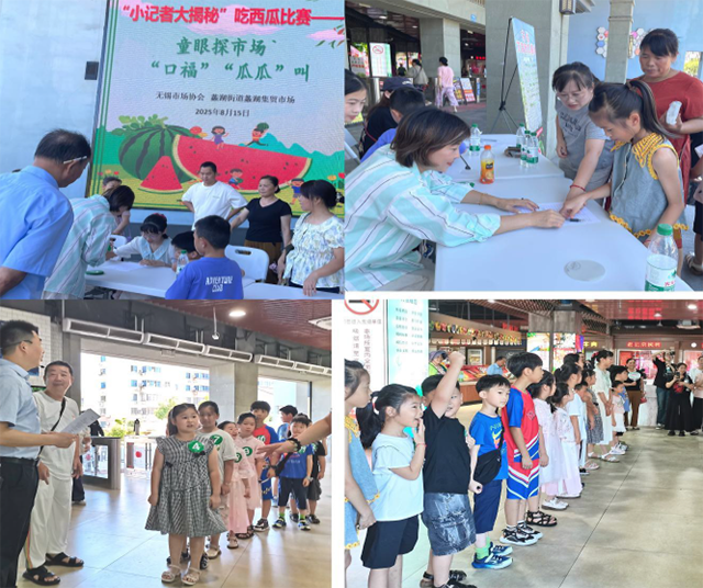 2025 年8 月15 日上午,蠡湖集貿(mào)市場內(nèi)童聲笑語與瓜果清香交織成趣。由無錫市場協(xié)會與蠡湖集貿(mào)市場聯(lián)合主辦的“童眼探市場‘口?!瞎稀小∮浾呤袌龃蠼颐亍背晕鞴媳荣惢馃嵘涎荩?8 名5-12 歲的小記者化身市場探索家,開啟了一場別開生面的消費體驗之旅。