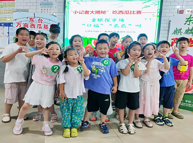 探秘之旅的高潮當屬趣味十足的吃西瓜大賽。徐群峰總經(jīng)理親自擔任主持,不僅生動介紹了市場榮譽、創(chuàng)新業(yè)態(tài)及精選“東臺西瓜”的特色故事,更見證了小小選手們大快朵頤的歡樂場面。