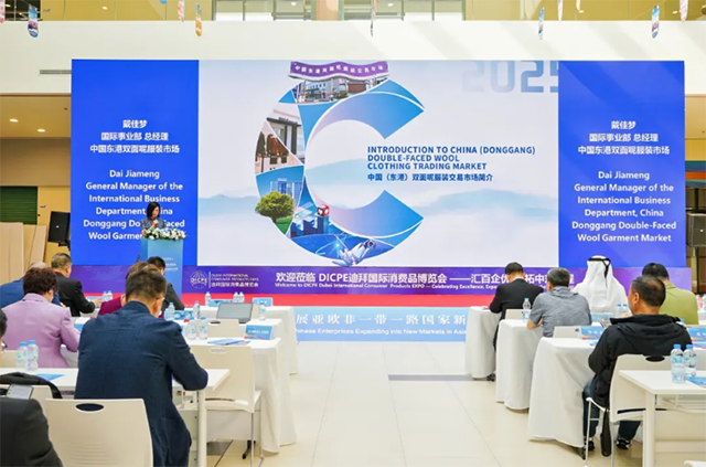 2025 年 11 月 25 日,迪拜國際消費品博覽會暨迪拜中國嘉興優(yōu)品品牌出海展覽會在阿聯(lián)酋迪拜義烏市場隆重開幕。本次博覽會以“透視中東,破局出?!睘橹黝},致力于搭建全球消費品交流與合作的高端平臺,助力中國消費品產(chǎn)業(yè)在亞非歐“一帶一路”國家新興市場的發(fā)展。開幕式上, 東港雙面呢服裝迪拜直銷中心正式揭牌。成為東港雙面呢服裝產(chǎn)業(yè)突破國內(nèi)市場邊界、深度布局中東及全球市場的全新起點,也為東港雙面呢服裝產(chǎn)業(yè)發(fā)展按下了國際化的 “加速鍵”。