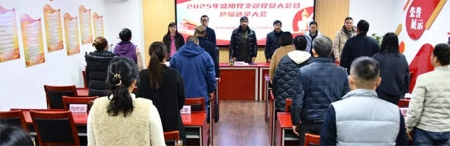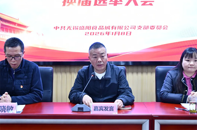 2026年1月8日,中共無錫盛陽食品城有限公司支部委員會黨員大會暨換屆選舉會議在無錫盛陽食品城有限公司會議8號樓多功能會議室隆重召開。盛陽黨支部全體黨員、預(yù)備黨員參會,會議由盛陽黨支部副書記侯丹花同志主持,毛岸新苑社區(qū)黨總支書記徐禮佳同志,盛陽食品城董事長龔志勇先生受邀參會。