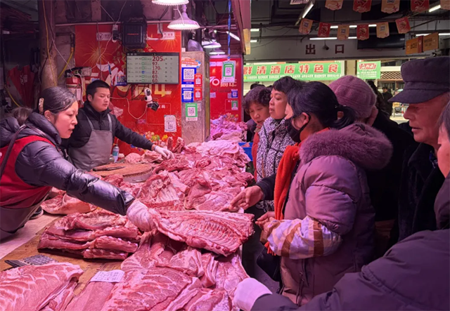 春節(jié)將至,肉類消費(fèi)進(jìn)入傳統(tǒng)旺季。適合制作香腸、臘肉的前后腿肉、五花肉成為采購熱點(diǎn),因其肥瘦相宜、風(fēng)味濃郁,深受市民喜愛。目前,前后腿肉批發(fā)均價(jià)約19元/公斤,五花肉約22元/公斤,價(jià)格較上月略有波動(dòng),但整體處于合理區(qū)間。