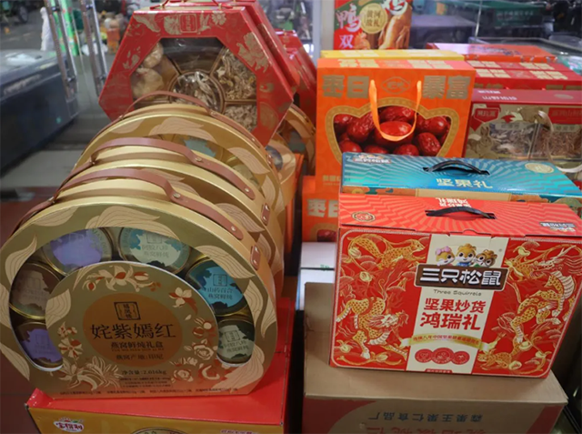 迎合春節(jié)消費(fèi),各類節(jié)日禮盒紛紛上市,涵蓋堅(jiān)果、南北貨、調(diào)味品、腌臘、菌菇等品類,包裝精美、性價(jià)比高,成為走親訪友優(yōu)選。目前凍品市場貨源充足,價(jià)格平穩(wěn),兩座6萬噸智能冷庫庫存飽滿,可充分保障節(jié)日供應(yīng)。