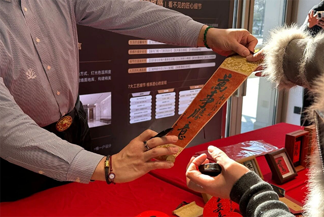 活動(dòng)現(xiàn)場(chǎng),墨香四溢。揮毫潑墨,一幅幅承載著定制祝福的春聯(lián)與“?!弊衷诠P下誕生。一橫一豎,寫下對(duì)嶄新生活的向往;一撇一捺,勾勒出家的團(tuán)圓模樣。手寫的,才是最有溫度的年味。除了墨寶,驚喜好禮也讓現(xiàn)場(chǎng)歡笑不斷!業(yè)主家人們通過互動(dòng)抽獎(jiǎng),將AirPods Pro、徠芬吹風(fēng)機(jī)、美的暖菜板、汝窯茶具等實(shí)用好禮抱回家。