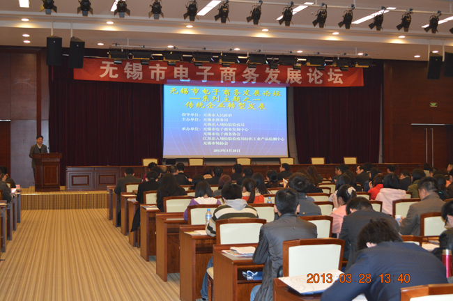 3月28日下午,無錫市電子商務發(fā)展論壇在市民中心13號樓一樓會議室舉行。中國網(wǎng)庫、淘寶網(wǎng)、支付寶等電子商務行業(yè)的知名專家和企業(yè)高層到會進行專題演講。亞馬遜中國,富士時裝無錫目線有限公司等行業(yè)著名服裝商和傳統(tǒng)企業(yè)典型代表到會作互動交流。無錫市場協(xié)會相關(guān)單位四十多名領導和經(jīng)營管理者參加了此次會議。