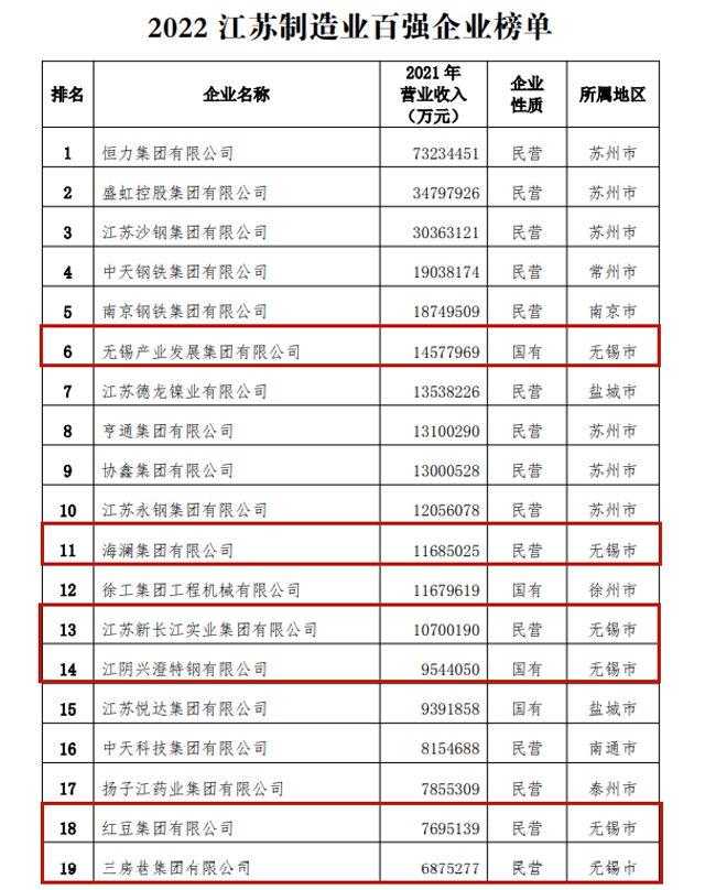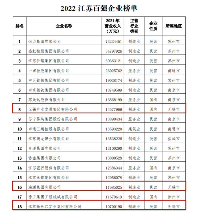 2022江蘇百強企業(yè),無錫多家企業(yè)上榜!