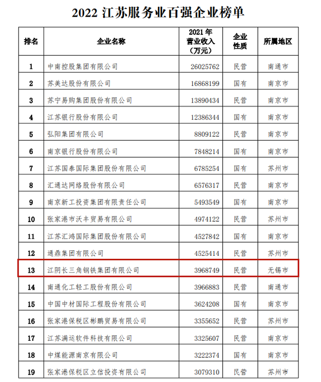 “2022江蘇服務業(yè)百強企業(yè)榜單”中
