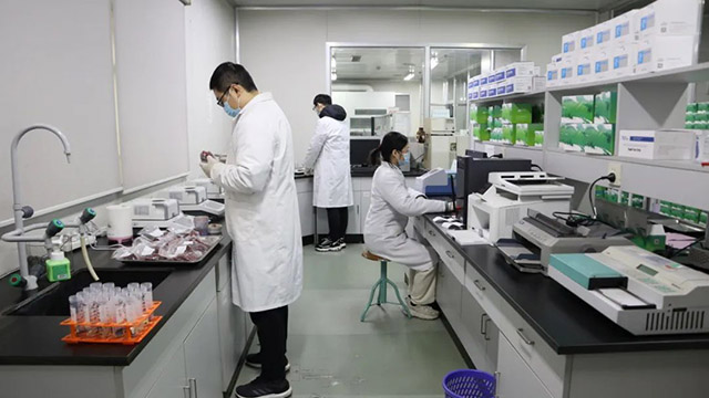 偌大的豬肉市場(chǎng)里批發(fā)戶忙碌的身影已散去,散客人潮又來臨。為做好今年的春供,市場(chǎng)管理方從半個(gè)月前即啟動(dòng)春供保障方案,多管齊下確保貨源充足、價(jià)格穩(wěn)定,元旦市場(chǎng)成交白條4500頭,較平時(shí)增長(zhǎng)40%,前來采買鮮肉、臘肉和灌制香腸的市民絡(luò)繹不絕。在天鵬二號(hào)冷庫(kù)月臺(tái),成排的冷鏈車輛正忙碌卸貨入庫(kù),元旦當(dāng)天入庫(kù)439.3噸,出庫(kù)354.2噸,涵蓋禽類、調(diào)理品、水產(chǎn)、牛羊等數(shù)十品種。中華老字號(hào)“真正老陸稿薦”作為地方特色年貨供應(yīng)重點(diǎn)單位,提前備足食材,全員上陣、開足馬力置備年貨,60多位師傅一早開始了繁重的燒煮任務(wù),30余個(gè)品種每天10噸生產(chǎn)量,同時(shí)還確保無(wú)錫地區(qū)近30家門店每日新鮮鹵菜供應(yīng)。在天鵬檢測(cè)中心檢測(cè)室內(nèi),一排排試劑盒、一個(gè)個(gè)檢測(cè)樣本和忙碌的檢測(cè)人員構(gòu)建了天鵬食品安全防護(hù)體系,為確保群眾買得放心、吃得安心,檢測(cè)中心全體人員加班加點(diǎn),加大豬牛羊禽、熟食和水產(chǎn)品日常抽樣量,加密各類商品檢測(cè)頻次,強(qiáng)化腌臘制品專項(xiàng)檢測(cè),檢測(cè)量較平時(shí)提高30%。