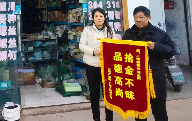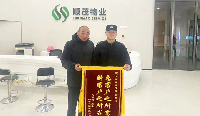 在收到失而復(fù)得的貴重物品后,為了表達(dá)崇高敬意和衷心感謝,失主特地定制了錦旗,錦旗上“品德高尚,拾金不昧”的金色大字,是對這兩位物業(yè)保安個人品質(zhì)的肯定,更是對雷鋒精神的傳承與發(fā)揚。