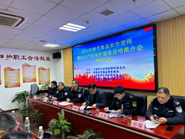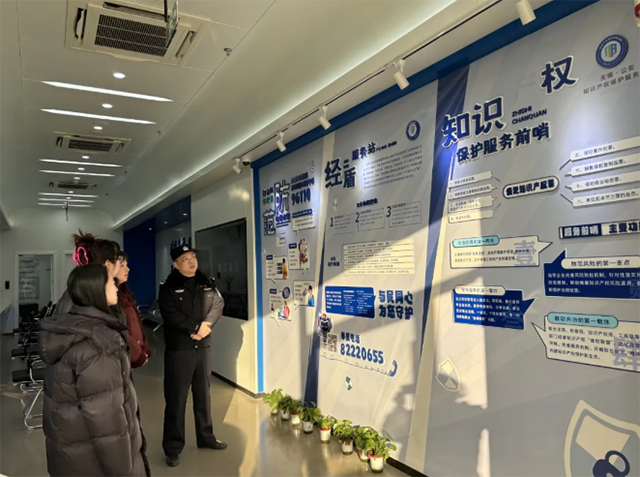 創(chuàng)新是引領(lǐng)發(fā)展的第一動力,保護知識產(chǎn)權(quán)就是保護創(chuàng)新。為全方位加強知識產(chǎn)權(quán)保護,切實維護企業(yè)合法權(quán)益,助力營造最優(yōu)法治營商環(huán)境,2025年1月8日上午8:30,無錫市公安局食藥環(huán)偵支隊組織號召無錫盛陽食品城有限公司辦公室主任侯丹花等一行4人來到了市公安梁溪分局知識產(chǎn)權(quán)保護服務(wù)前哨進行參觀。公安梁溪分局食藥環(huán)偵大隊孫磊、周莎負責接待、參觀引導和解說。