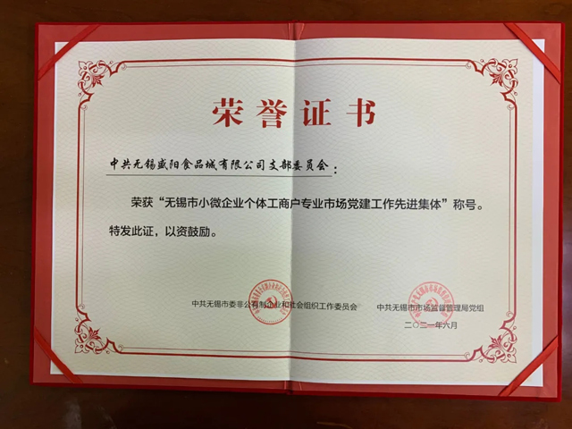 慶?;顒?dòng)中,公布了“小個(gè)?!秉h建工作先進(jìn)集體和先進(jìn)人物名單,林茂松部長為先進(jìn)集體代表頒發(fā)了榮譽(yù)證書,楊如年、張賢和盛小偉三位領(lǐng)導(dǎo)分別為先進(jìn)個(gè)人頒發(fā)了榮譽(yù)證書。其中,中共無錫盛陽食品城有限公司支部委員會光榮地獲得了無錫市“小個(gè)?!秉h建工作先進(jìn)集體榮譽(yù),盛陽黨支部書記華曙東同志也非常榮幸地獲得了江蘇省“小個(gè)?!秉h建工作先進(jìn)個(gè)人榮譽(yù)。