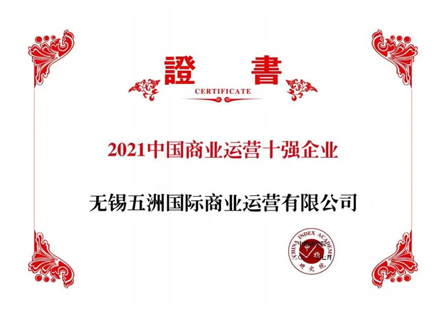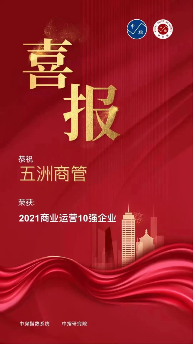 五洲商管喜獲“2021商業(yè)運營十強企業(yè)”獎項