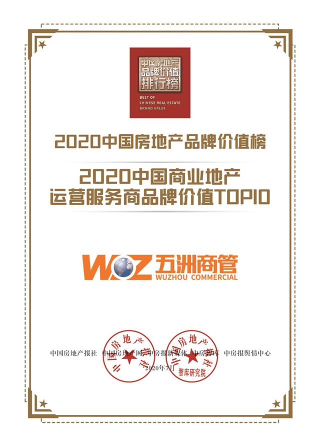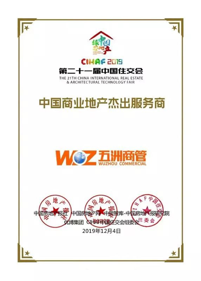 十余年的行業(yè)深耕和經驗積累,五洲商管集團獲得了眾多消費者和商家的認可與關注,服務模式和運營模式也獲得了政府和行業(yè)的肯定,曾獲評“中國商業(yè)地產杰出服務商”、“中國商業(yè)地產運營服務商品牌價值TOP10”等榮譽。