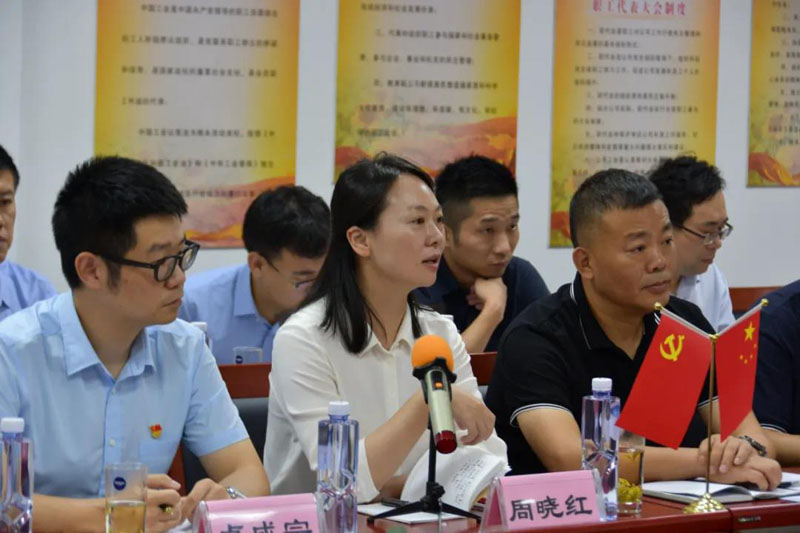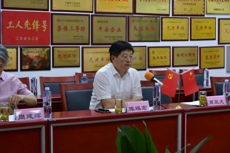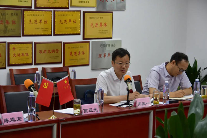 根據(jù)江蘇省市場(chǎng)監(jiān)督管理局蘇市監(jiān)辦【2021】132號(hào)發(fā)《省市場(chǎng)監(jiān)管局關(guān)于省局領(lǐng)導(dǎo)班子成員掛鉤聯(lián)系“小個(gè)?!秉h組織的通知》的文件要求,為了加強(qiáng)對(duì)“小個(gè)?!秉h建工作的指導(dǎo),2021年9月16日10:00,在無(wú)錫盛陽(yáng)食品城有限公司召開(kāi)了江蘇省市場(chǎng)監(jiān)督管理局“小個(gè)?!秉h建工作掛鉤聯(lián)系點(diǎn)座談會(huì)。江蘇省市場(chǎng)監(jiān)督管理局黨組成員、副局長(zhǎng)陳琪宏同志一行4人,無(wú)錫市梁溪區(qū)政府黨組成員、副區(qū)長(zhǎng)周曉紅同志,無(wú)錫市梁溪區(qū)委“兩新”工委副書(shū)記盧成宗同志,梁溪區(qū)廣益街道黨工委副書(shū)記馮云峰同志,黨工委副書(shū)記、無(wú)錫市食品科技園主任俞夸同志,以及無(wú)錫市市、區(qū)、街道市場(chǎng)監(jiān)督管理局多名同志,無(wú)錫盛陽(yáng)食品城有限公司董事長(zhǎng)、總經(jīng)理龔志勇同志,黨支部書(shū)記、常務(wù)副總?cè)A曙東同志,梁溪區(qū)水產(chǎn)行業(yè)工會(huì)聯(lián)合會(huì)主席丁偉峰同志,盛陽(yáng)食品城經(jīng)營(yíng)戶代表殷若慶同志、錢志東同志、施佰泉同志參加了本次座談會(huì)。