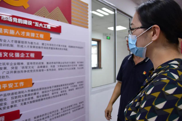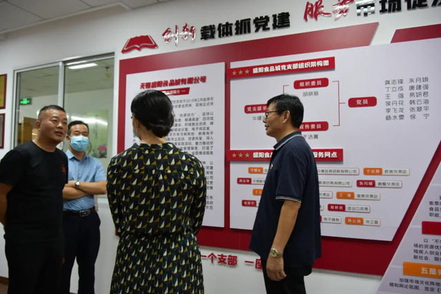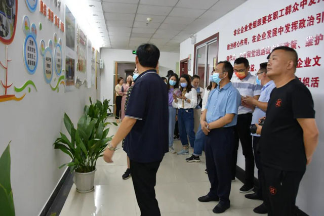 為進一步加強金湖、無錫兩地非公企業(yè)黨建工作經(jīng)驗交流,2021年9月25日下午16:00,金湖縣縣委組織部張部長帶領(lǐng)20余名非公經(jīng)濟企業(yè)家來到無錫盛陽食品城有限公司進行黨建工作調(diào)研參訪。無錫市梁溪區(qū)委“兩新”工委副書記盧成宗、廣益街道組織委員曹新愷、毛岸新苑社區(qū)副書記黃香麗等人全程陪同調(diào)研。盛陽食品城董事長龔志勇與盛陽黨支部書記、常務(wù)副總?cè)A曙東,熱情接待了客人們的來訪。過程中,首先由龔董和華書記帶領(lǐng)客人們依次參觀企業(yè)文化宣傳長廊、水產(chǎn)行業(yè)工會聯(lián)合會宣傳墻以及盛陽黨、工建活動陣地(多功能活動室、職工之家、電子閱覽室、心理疏導(dǎo)室、新職工陣地及盛陽易鮮達(dá)S2B2C供應(yīng)鏈體系項目組)。龔董向大家簡單介紹了企業(yè)的發(fā)展歷程、經(jīng)營模式以及以意識形態(tài)思想教育提升水產(chǎn)從業(yè)人員綜合素質(zhì)的經(jīng)營理念。隨后,華書記向眾人重點介紹了盛陽黨支部成立以來,依托廣益街道黨工委家藝小鎮(zhèn)黨建的區(qū)域優(yōu)勢,根據(jù)“兩新”黨建工作要求,結(jié)合無錫市非公有制企業(yè)黨支部標(biāo)準(zhǔn)的建設(shè),以推動習(xí)近平新時代中國特色社會主義思想進一步深入人心、落地生根,引導(dǎo)全體員工、經(jīng)營戶增強“四個意識”,堅定“四個自信”,做到“兩個維護”,在思想上、政治上、行動上同以習(xí)近平同志為核心的黨中央保持一致,為實現(xiàn)中華民族偉大復(fù)興的中國夢而不懈奮斗。近年來,公司一直致力于以“務(wù)實、貼心、創(chuàng)新、服務(wù)”的黨建理念,切實維護職工的合法權(quán)益,增強黨組織對員工、經(jīng)營戶的凝聚力、向心力。組織開展“不忘初心、牢記使命”主題教育活動,以建立兩個機制、三個建設(shè)和五大工程的推進,充分發(fā)揮黨建的示范引領(lǐng)作用。認(rèn)真聽取完盛陽黨建工作的經(jīng)驗介紹,金湖縣組織部張部長等人對盛陽積極做好非公企業(yè)意識形態(tài)領(lǐng)域工作,提升“水產(chǎn)人”形象,以及在開展“強農(nóng)惠農(nóng)”“產(chǎn)銷對接”起到保供穩(wěn)價和創(chuàng)建“信用+聯(lián)盟+合作”社會信用體系工作上做出的努力、為政府分憂解難的做法進行了充分的肯定,對盛陽黨支部堅持以黨建帶工建、黨建帶關(guān)建、黨建帶群建,促進企業(yè)發(fā)展的工作開展表示十分贊揚;同時,也對龔董作為民營企業(yè)家對非公黨建所表現(xiàn)出的重視、做出的不懈支持以及龔董體現(xiàn)出的愛黨愛國、勇于承擔(dān)社會責(zé)任的高尚情懷表示了由衷的敬佩。下午16:50,本次調(diào)研活動歷時50分鐘順利結(jié)束。