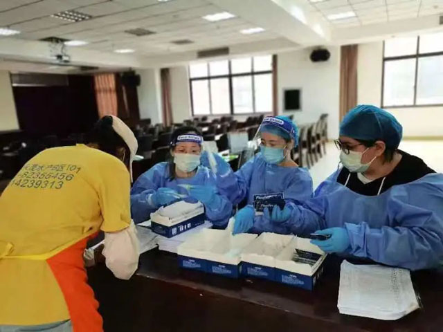公司重啟每日全員核酸檢測(日均3000人次),并于7月4日起啟動了包含員工、經(jīng)營戶和消費者在內(nèi)的一天兩輪次的全員抗原檢測(約8000人次)。各黨組織充分發(fā)揮黨的政治優(yōu)勢、組織優(yōu)勢和密切聯(lián)系群眾優(yōu)勢,黨員、團員志愿者紛紛再次請纓,助力全員核酸和抗原檢測志愿服務(wù),市場內(nèi)不少經(jīng)營戶和沿街商鋪經(jīng)營管理人員也主動加入,以實際行動支持天鵬食品城的防控工作。