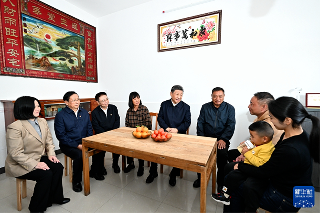在村民熊成龍家,習(xí)近平仔細察看家居生活,同一家人圍坐在一起,了解生產(chǎn)、孩子就業(yè)創(chuàng)業(yè)、家庭收入、養(yǎng)老醫(yī)療等情況。聽說這些年城鄉(xiāng)基本公共服務(wù)體系不斷健全,農(nóng)民物質(zhì)文化生活越來越有保障,習(xí)近平很高興。他希望一家人繼續(xù)努力,把生產(chǎn)、生活搞得更好,把孩子培養(yǎng)好,讓好日子越過越紅火。