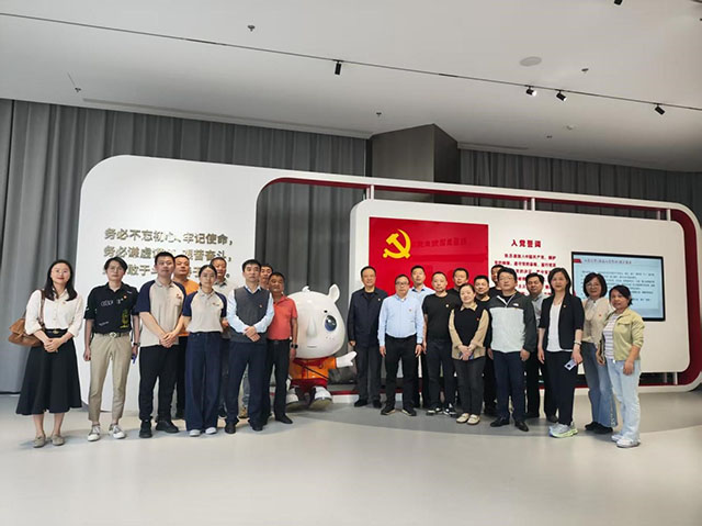 最后,參觀團(tuán)一行來(lái)到“黨建墻”板塊。在這里,黨建與數(shù)字化轉(zhuǎn)型融合互進(jìn)。黨建引領(lǐng)為數(shù)字化轉(zhuǎn)型提供了堅(jiān)強(qiáng)的政治保障和精神動(dòng)力,而數(shù)字化轉(zhuǎn)型也為黨建工作注入了新的活力和創(chuàng)新元素。在黨建墻前,全體參加人員合影留念。