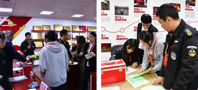 三位受邀領(lǐng)導在全體與會代表熱烈掌聲歡送離場后,預備會議至此結(jié)束。隨即,正式會議在莊嚴的國歌聲中開始。會議應到正式代表22名,因故請假1名,實到代表21名。大會本著“公開、公平、公正”的原則,主持人提請到會代表表決通過了《選舉辦法》,在總監(jiān)票人侯丹花的監(jiān)督下,代表們投下了神圣的一票。會議選舉產(chǎn)生了趙涌元、錢夏、金任、王強、周定蘭、毛曉玲、張旖7名工會委員,通過了金任、王強、毛曉玲3名經(jīng)審會委員名單(由金任擔任經(jīng)審委主任),通過了錢夏、周定蘭、張旖3名女職工代表名單(由錢夏擔任女職委主任)。