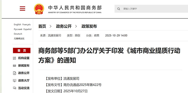 為完善現(xiàn)代商貿(mào)流通體系和擴(kuò)大消費(fèi)長(zhǎng)效機(jī)制,進(jìn)一步推動(dòng)城市商業(yè)轉(zhuǎn)型提質(zhì),提升商品和服務(wù)消費(fèi),充分發(fā)揮城市在國(guó)內(nèi)國(guó)際雙循環(huán)中的樞紐作用,近日,商務(wù)部等5部門印發(fā)《城市商業(yè)提質(zhì)行動(dòng)方案》。