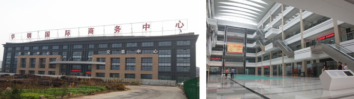 為建設(shè)“強(qiáng)勢(shì)市場(chǎng)”、“主流市場(chǎng)”,搭建更好服務(wù)于鋼廠和鋼貿(mào)企業(yè)的鋼鐵物流基地,在江陰市委、市府的關(guān)心支持下,江陰金屬材料市場(chǎng)于2008年全面啟動(dòng)“改擴(kuò)建項(xiàng)目”。該項(xiàng)目總投資8.6億元。目前,已完成二個(gè)中心的建設(shè),3即“倉(cāng)儲(chǔ)加工中心”和“現(xiàn)貨交易中心”。08-09年,新建“3萬(wàn)平方米鋼結(jié)構(gòu)室內(nèi)倉(cāng)庫(kù)、4萬(wàn)平方室外倉(cāng)庫(kù)和6000平方米營(yíng)業(yè)用房”的“倉(cāng)儲(chǔ)加工中心” 落成并投入使用,至此,市場(chǎng)倉(cāng)儲(chǔ)加工更具規(guī)模,可實(shí)現(xiàn)年吞吐800噸鋼材。09-10年,建筑面積為5.8萬(wàn)㎡的“現(xiàn)貨交易中心”落成。新的現(xiàn)貨交易中心按五星辦公交易標(biāo)準(zhǔn)建設(shè):不僅配套光纖網(wǎng)絡(luò)、中央空調(diào)和新風(fēng)系統(tǒng);配套有自動(dòng)扶梯(8臺(tái))、觀光電梯(4臺(tái))和客貨兩用電梯(1臺(tái));而且配套全方位電子監(jiān)控、自動(dòng)報(bào)警系統(tǒng)和保安巡更系統(tǒng)。交易中心不僅每個(gè)樓層配套公共衛(wèi)生間,每戶商鋪提供內(nèi)衛(wèi),內(nèi)部設(shè)有庭院綠化(大廳968㎡,兩個(gè)小廳各450㎡)、景觀天橋和特色景觀;配套銀行、咖吧、聊吧、多功能會(huì)議廳,還配套建有電子商務(wù)平臺(tái)和星級(jí)服務(wù)體系。此外,地上、地下設(shè)有停車(chē)位共有500多個(gè),完全滿足現(xiàn)代商務(wù)停車(chē)需求。新建“現(xiàn)貨交易中心”是目前華東地區(qū)最具現(xiàn)代氣息的高檔交易結(jié)算辦公中心。