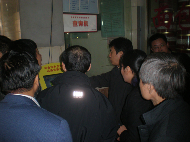 檢查中,市場(chǎng)經(jīng)理屠俊宏向副市長(zhǎng)詳細(xì)介紹了農(nóng)副產(chǎn)品貨源、價(jià)格、蔬菜農(nóng)藥殘留的檢測(cè),及水發(fā)產(chǎn)品的檢測(cè)等。副市長(zhǎng)史立軍察看市場(chǎng)食品安全追溯系統(tǒng),還特別問(wèn)了市場(chǎng)屠經(jīng)理,市場(chǎng)是怎樣確保自產(chǎn)自銷(xiāo)的真實(shí)性,使百姓菜籃子拎的放心。