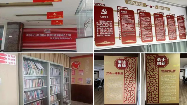 自成立以來,無錫五洲國際裝飾城黨支部不斷夯實黨建基礎,圍繞黨建主題美陳、黨員活動中心、黨建長廊等,打造“紅色物業(yè)”黨群服務陣地,引領“紅色物業(yè)”氛圍,擦亮裝飾城黨支部品牌。