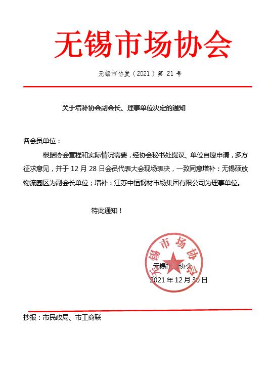 關(guān)于增補協(xié)會副會長、理事單位決定的通知