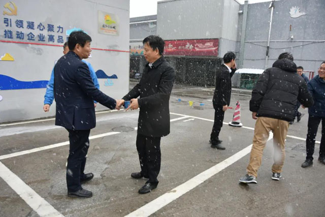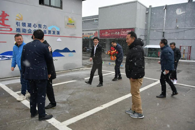 下雪了下雪了!受冷空氣影響,2022年2月7日一大早,無錫農批市場——盛陽食品城內就被冬雪覆蓋,迎來了2022年復工的第一場雪。上午10:00,漫天飛舞的雪花迎風飄揚,市農業(yè)農村局局長吳立剛,產業(yè)處處長黃成,畜牧獸醫(yī)處處長周慶新,辦公室副主任王程亮一行四人不畏天氣嚴寒,特意來到盛陽食品城進行參訪。盛陽食品城董事長龔志勇攜公司黨支部書記、常務副總華曙東,公司人事板塊、運營板塊負責人丁偉峰、馮敏接待來訪。
