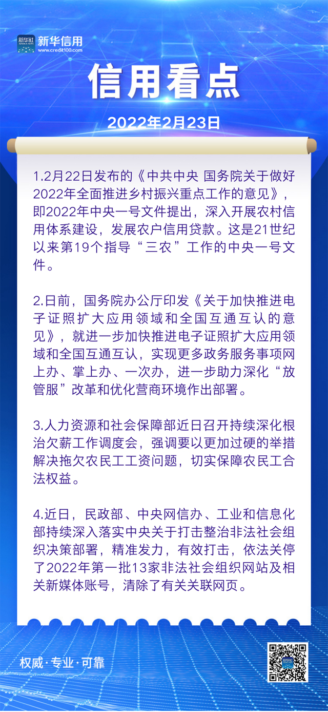 2022年中央一號(hào)文件:深入開(kāi)展農(nóng)村信用體系建設(shè)