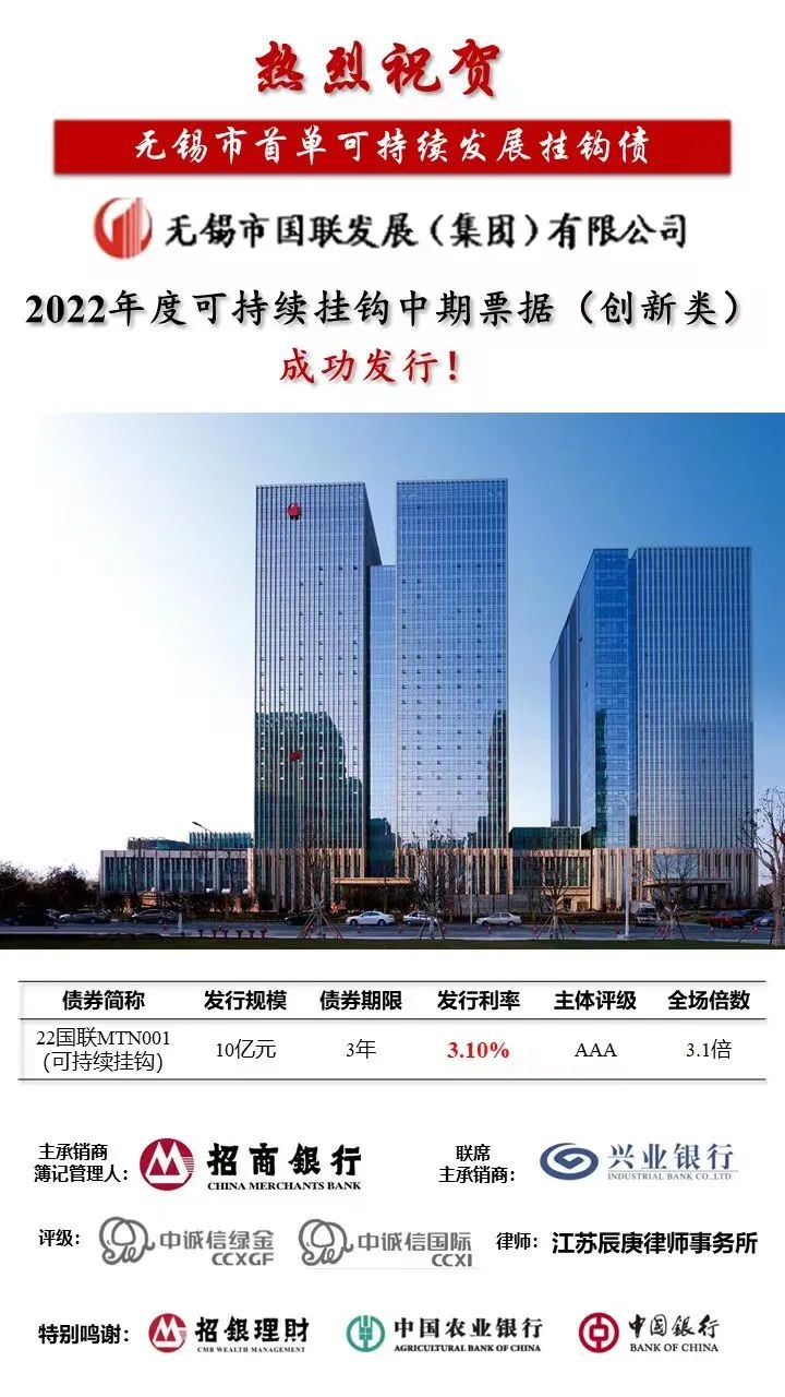 4月20日,國(guó)聯(lián)集團(tuán)成功發(fā)行全市首單可持續(xù)發(fā)展掛鉤債,融資規(guī)模10億元,票面利率3.10%,全場(chǎng)認(rèn)購(gòu)倍數(shù)3.1倍,創(chuàng)下自交易商協(xié)會(huì)推出可持續(xù)掛鉤債券以來(lái)地級(jí)市屬國(guó)企同期限產(chǎn)品票面利率新低。
