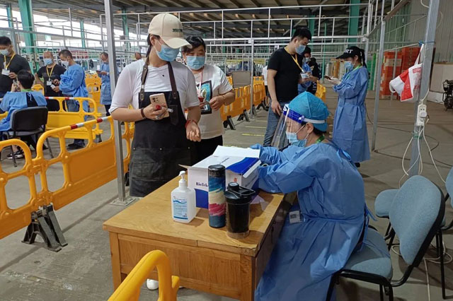 “每個(gè)棚要設(shè)立一個(gè)點(diǎn)位?!薄翱乖瓩z測(cè)點(diǎn)位的人員如何安排?”“所有人員必須在門崗檢查抗原檢測(cè)顯色正常后才可出場(chǎng)?!?日凌晨三點(diǎn),面對(duì)錯(cuò)綜復(fù)雜的疫情走向與全新而陌生的篩查方式,領(lǐng)導(dǎo)班子、市場(chǎng)經(jīng)理室成員迅速頭腦風(fēng)暴,短短一個(gè)小時(shí)完成了點(diǎn)位設(shè)立、試劑分發(fā)、人員安排、通知下發(fā)等一系列工作,在最快時(shí)間內(nèi)保證市場(chǎng)內(nèi)所有人員抗原檢測(cè)“做得到、做得快、結(jié)果準(zhǔn)”。