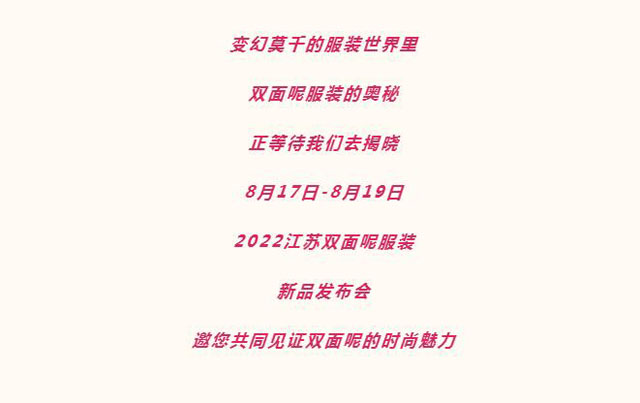 江蘇省雙面呢服裝交易市場是全國超大規(guī)模雙面呢服裝一級貨源地,超500家雙面呢生產(chǎn)廠家匯聚于此,眾多時尚原創(chuàng)設(shè)計品牌,現(xiàn)已推出2022最新款式,高品質(zhì)的面料,精致的剪裁工藝,結(jié)合當下最流行的元素,融于進服裝設(shè)計中,讓女性能夠感受到雙面呢的高級的質(zhì)感,引領(lǐng)雙面呢服裝新潮流。