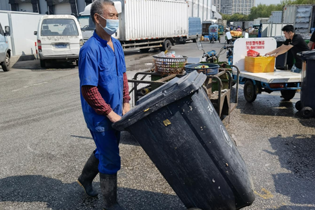 一桶、兩桶、三桶……60多個垃圾桶清運完畢,王師傅的工作服早就濕透了,不到9點,汗水已在衣服上形成了大片白花花的鹽漬,“趁著日頭足,中午洗洗曬曬,下午還可以繼續(xù)穿著這身衣服干活,我們習(xí)慣了,也沒有覺得特別熱”,他笑著說,汗水順著臉頰一滴滴淌下來。“寧可一人臟、換來一片凈”,三四個人的清運團隊每天要處理300多個垃圾桶,但保潔員們一絲不茍,不放過任何一個死角,長達八小時的清潔作業(yè)后,食品城又恢復(fù)了清爽與整潔。