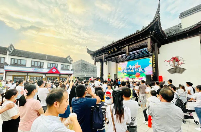 中秋假日,全市多地推出了豐富多彩的體驗(yàn)類活動(dòng),為民眾提供了多種假日消費(fèi)選擇,特別是“賞月”延展出的“月色經(jīng)濟(jì)”,為各地夜游消費(fèi)集聚超多人氣。梅里古鎮(zhèn)邀請(qǐng)梅里國(guó)風(fēng)樂(lè)團(tuán)小團(tuán)月,舉辦“花好月圓,梅里奇妙夜”活動(dòng),并在二胡廣場(chǎng)吳歌臺(tái)專門為戲迷們準(zhǔn)備了戲曲聯(lián)歡會(huì),游客聽一曲錫劇,納涼賞秋,共盡雅興。精彩紛呈的文化活動(dòng),為來(lái)自八方的游客帶來(lái)了不一樣的中秋體驗(yàn),梅里古鎮(zhèn)中秋節(jié)當(dāng)天客流達(dá)27.55萬(wàn)人次,創(chuàng)年度新高。蕩口古鎮(zhèn)開展“月下華章 流光延祥”2022蕩口中秋系列活動(dòng),九里倉(cāng)輕文旅街區(qū)在9月10日晚舉辦中秋節(jié)暨教師節(jié)晚會(huì),并舉辦中秋唯美燈影水秀,裝點(diǎn)別樣中秋情。