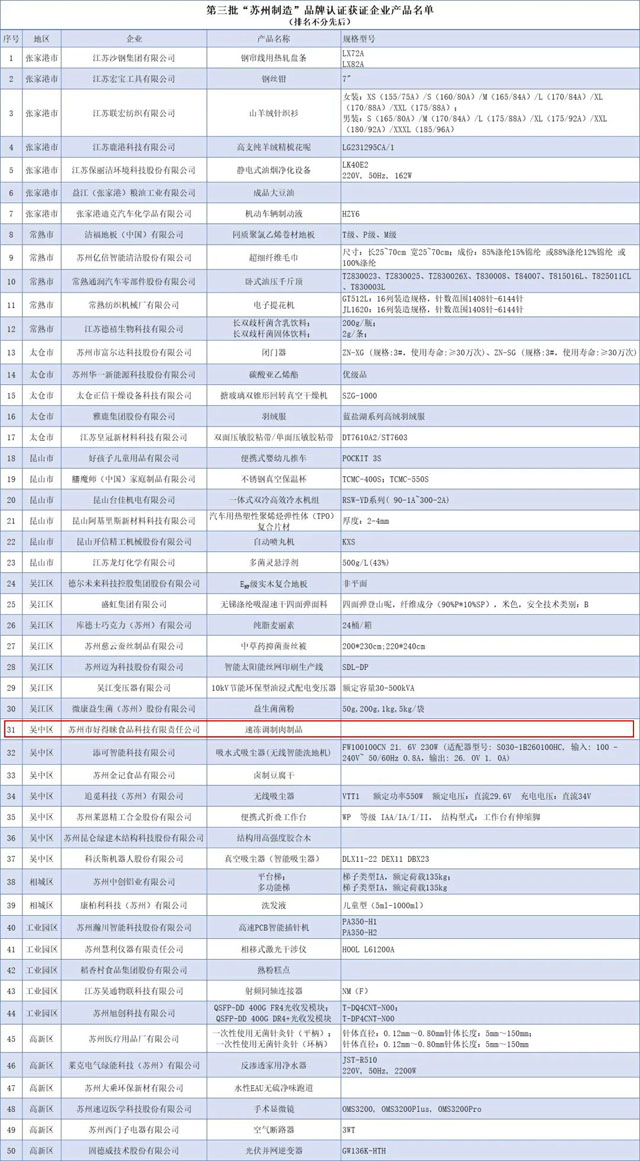 近日,2022年“蘇州制造”品牌國際認(rèn)證聯(lián)盟發(fā)布了第三批“蘇州制造”品牌認(rèn)證獲證企業(yè)產(chǎn)品名單。