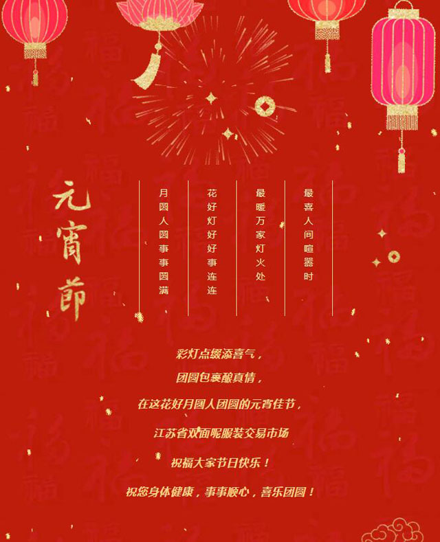 歡天喜地,幸福團(tuán)圓 | 江蘇省雙面呢服裝交易市場祝您元宵節(jié)快樂!