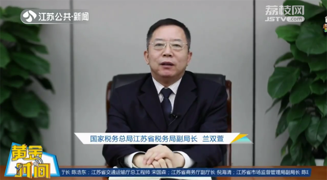 江蘇省委改革辦與江蘇廣電總臺融媒體新聞中心、江蘇公共·新聞頻道聯(lián)合策劃的大型改革政策解讀節(jié)目《黃金時間一改革政策e解讀》推出特別節(jié)目《“42條”你問我答》,國家稅務(wù)總局江蘇省稅務(wù)局黨委委員、副局長蘭雙萱對“42條”涉稅政策進行解讀。