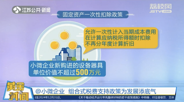 小微企業(yè)還可以享受固定資產(chǎn)一次性扣除政策。企業(yè)新購進的設(shè)備器具,單位價值不超過500萬元的,允許一次性計入當(dāng)期成本費用在計算應(yīng)納稅所得額時扣除,不再分年度計算折舊。