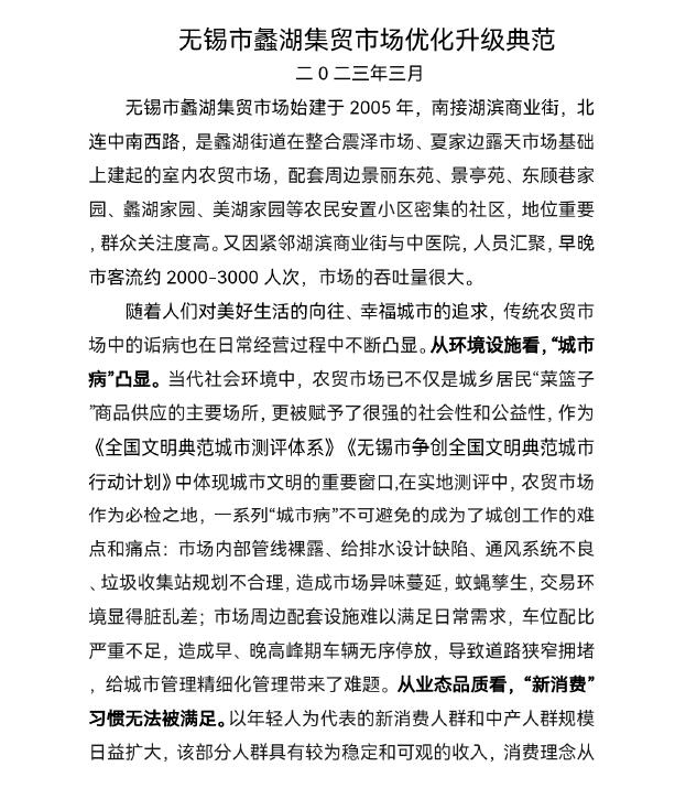 無錫市蠡湖集貿(mào)市場優(yōu)化升級典范